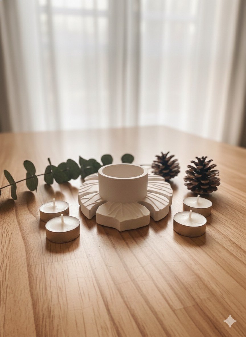 Designed as a standalone centerpiece or a complement to existing decorations, the Concrete Leaf Candle Holder accommodates most standard candle sizes. Its compact design ensures it fits perfectly on coffee tables, dining tables, bedside stands, or even bookshelves. Whether used indoors or outdoors, this holder seamlessly blends functionality with style. Plus, it’s easy to maintain—just wipe clean with a dry cloth when needed.